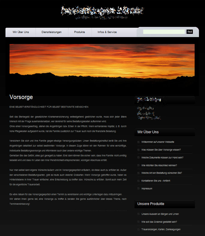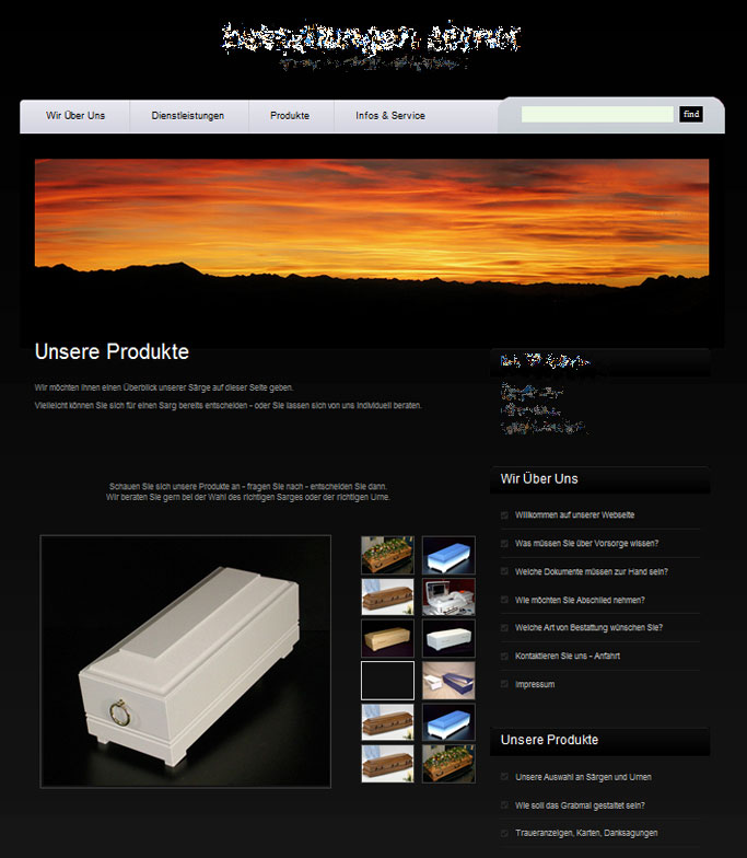 Im Beispiel ist als Grundfarbe schwarz gewählt - passend für ein Beerdigungsinstitut.
